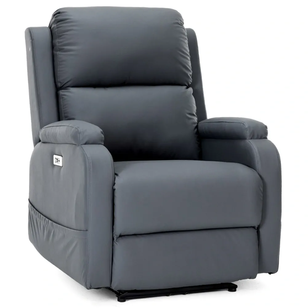 TV křeslo s elektrickým polohováním, zabudované ovládání, USB-A, šedá ekokůže